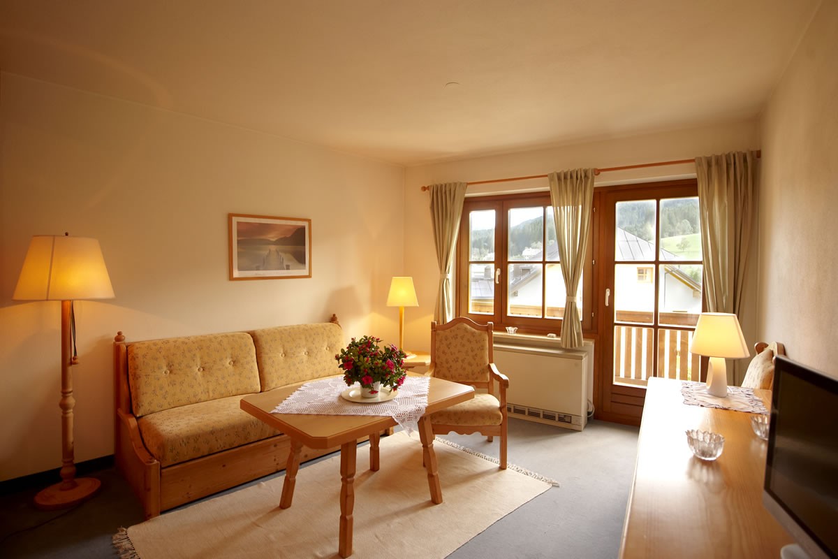 Wohnraum mit Sitzgarnitur, TV, Radio